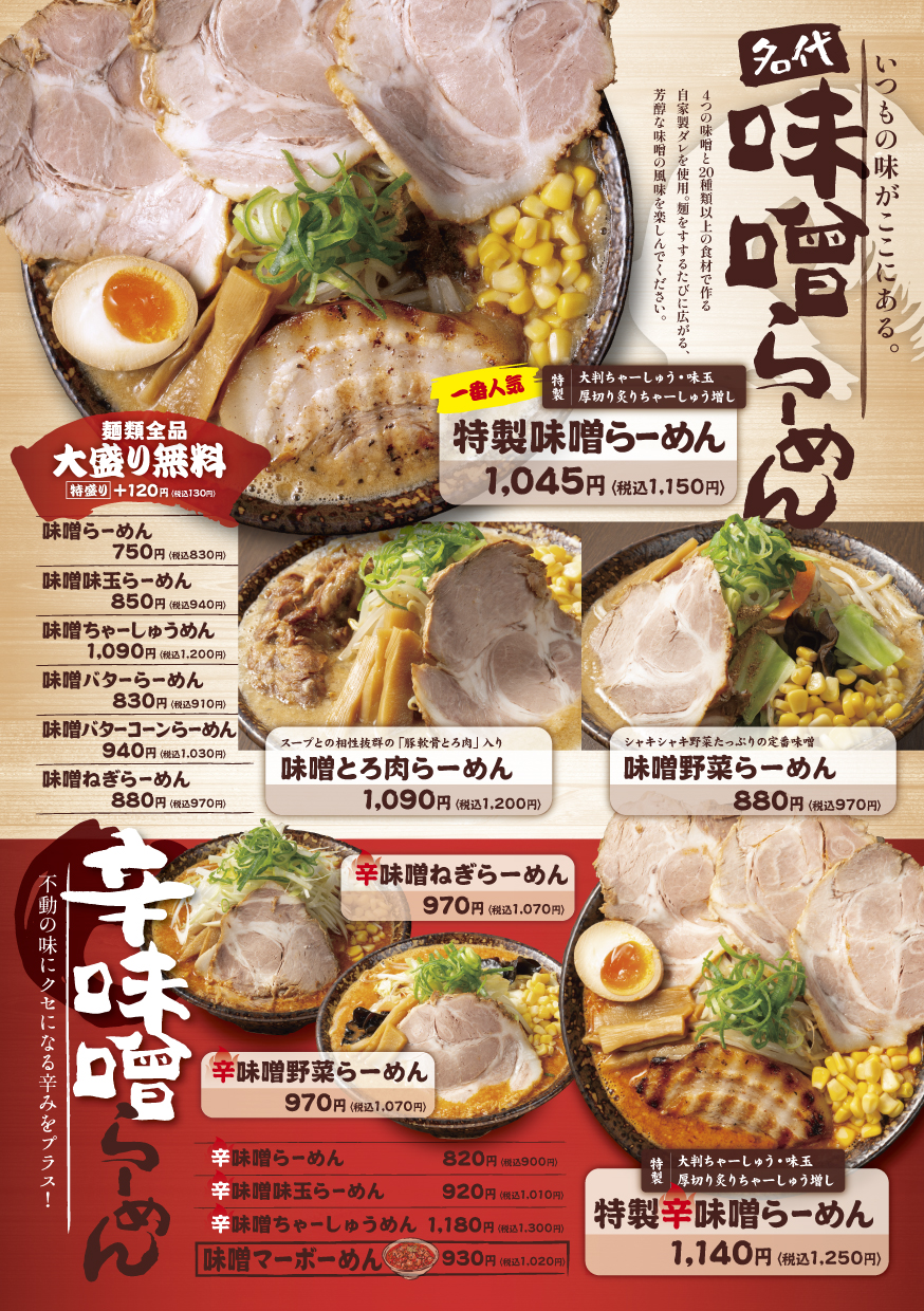 3種類の自家製麺を使った多彩なラーメンを楽しめるお店です。人気の味噌らーめんには4つのみそと20種類以上の食材で作る自家製ダレを使用しています。麺をすするたびに広がる、芳醇なみその風味を楽しんでください。